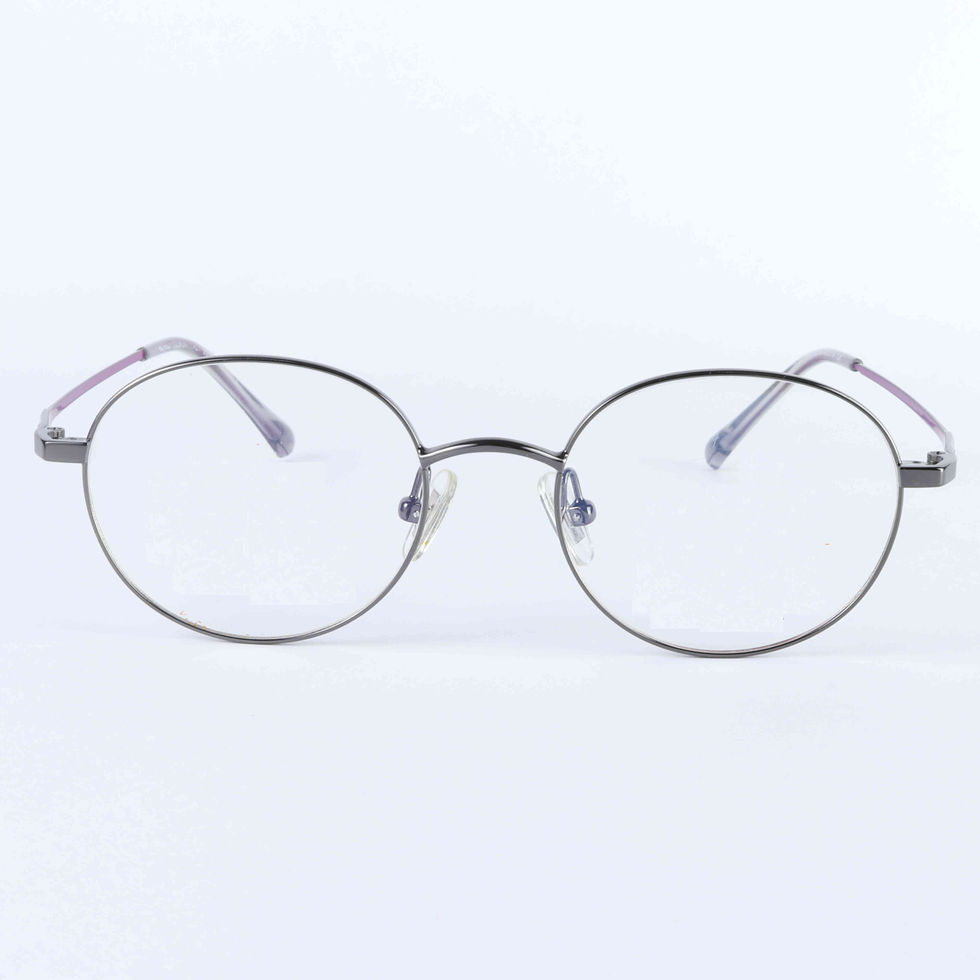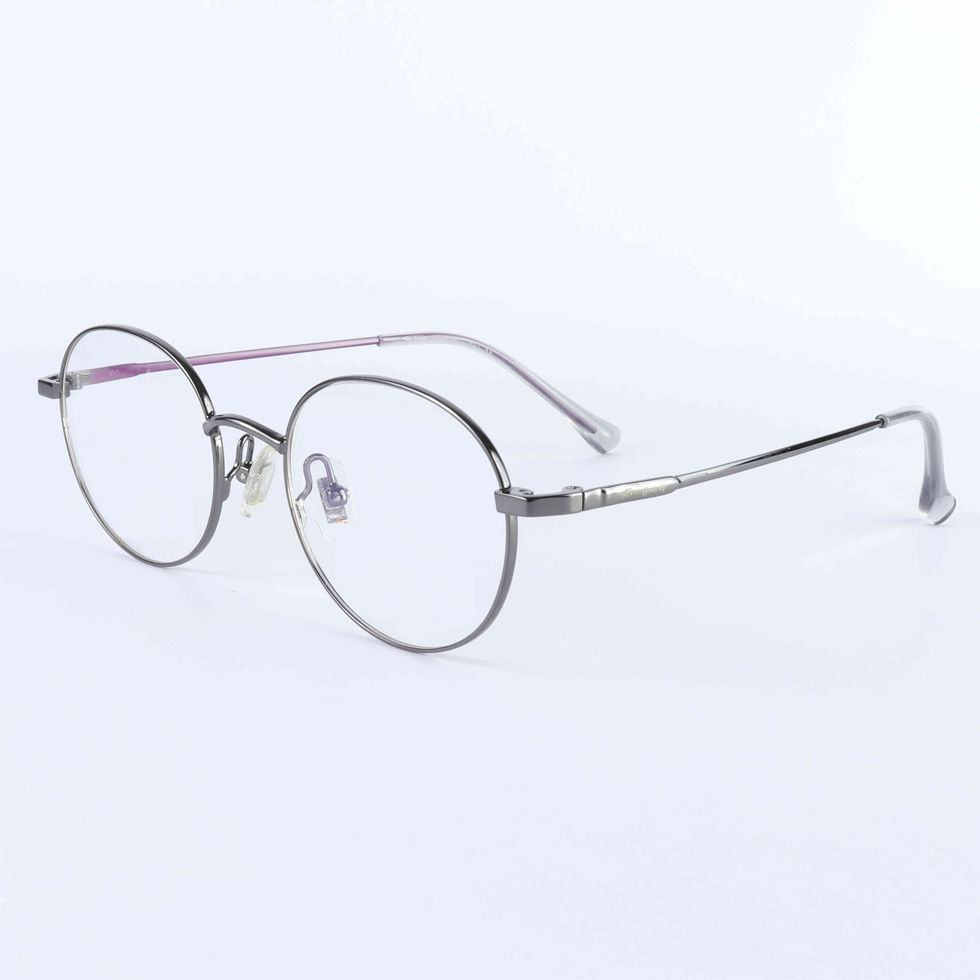 Timeless round frames in a deep graphite finish with soft lilac temple tips for added flair.