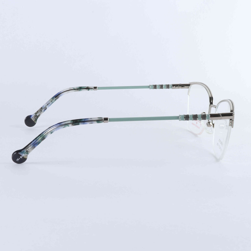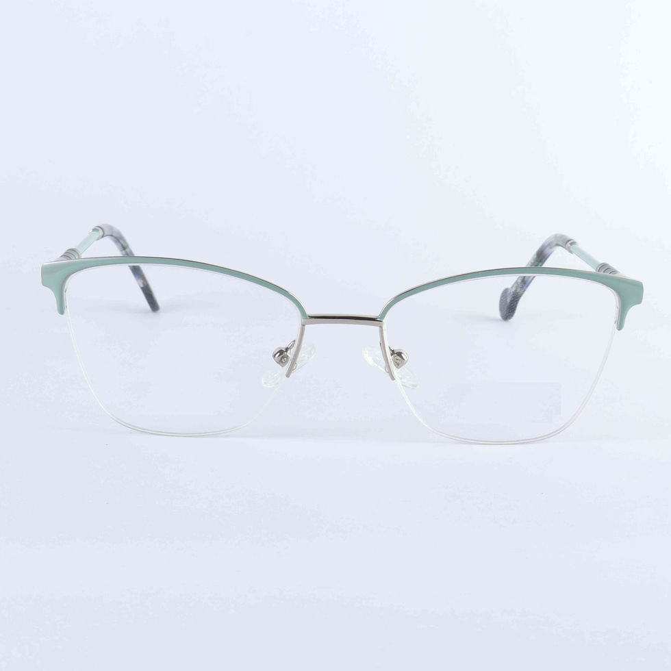 Elegant semi-rimless frames with a bold jade green browline, gold metal details, and comfortable fit for stylish everyday wear.