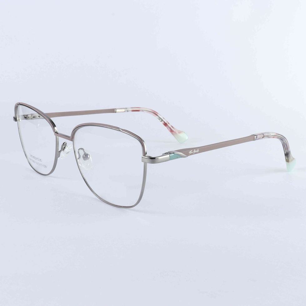 Elegant metal frame with silver accents, perfect for refined looks. Lightweight for comfortable wear.